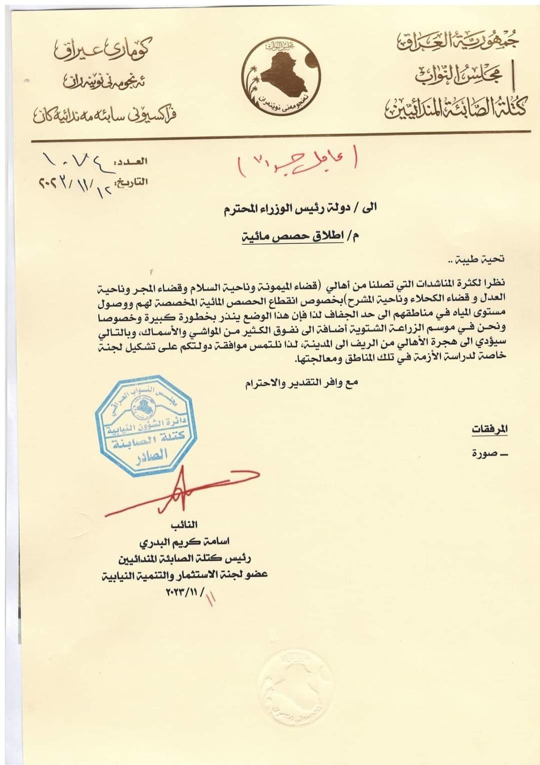الوضع وصل إلى الجفاف.. طلب برلماني لإطلاق حصص ميسان المائية