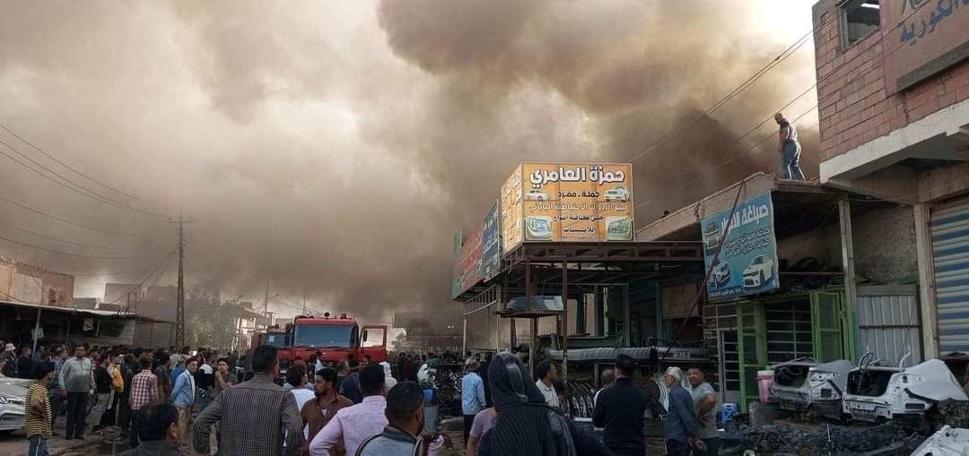 فيديو.. حريق "ضخم" يندلع في حي صناعي بالبصرة