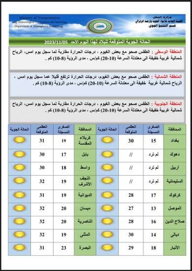 طقس العراق.. الحرارة تعاود الإرتفاع ولا أمطار حتى الأسبوع المقبل