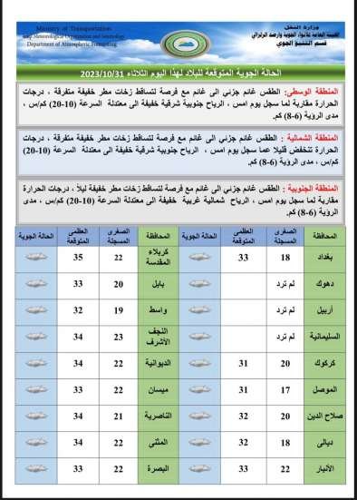 طقس العراق.. درجات حرارة ثلاثينية وأمطار رعدية خلال الأيام المقبلة