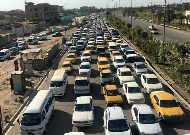 شلل تام بحركة السير في مدخل بغداد الغربي بسبب "الشاحنات"