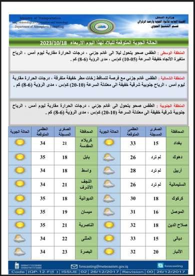 العراق.. أجواء مُغبرة مع فرص لتساقط زخات مطر خفيفة شمالي البلاد