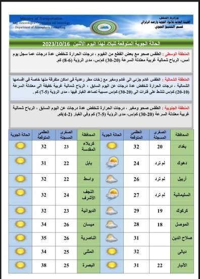 طقس العراق.. درجات حرارة منخفضة مع فرص لتساقط أمطار رعدية