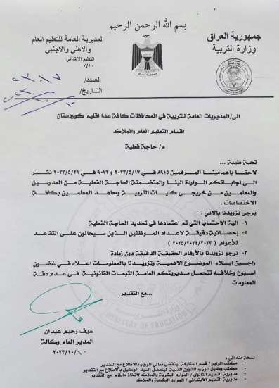 التربية تمهل مديرياتها أسبوعاً واحداً بشأن الحاجة الفعلية للمعلمين والمدرسين