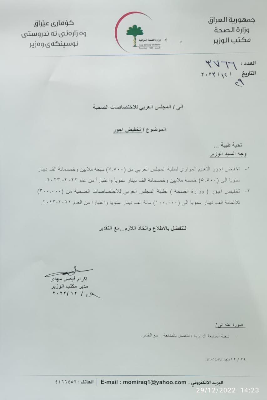 وزير الصحة يوجه بتخفيض أجور التعليم الموازي