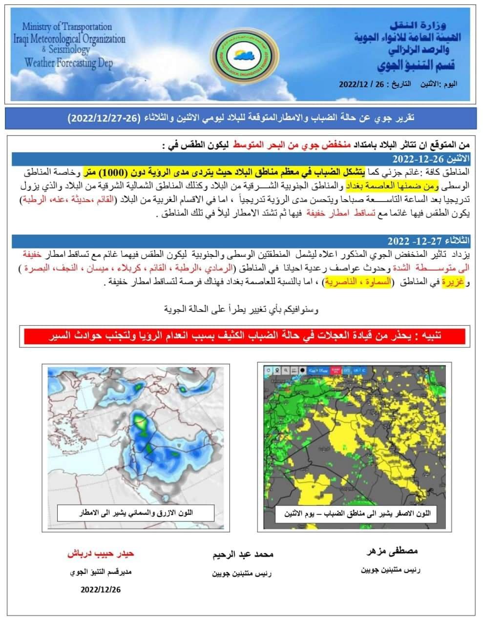 ? الأنواء الجوية: الضباب يزول تدريجياً بعد الساعة التاسعة من صباح اليوم الإثنين.. ونتوقع هطول الأمطار يوم غد الثلاثاء?