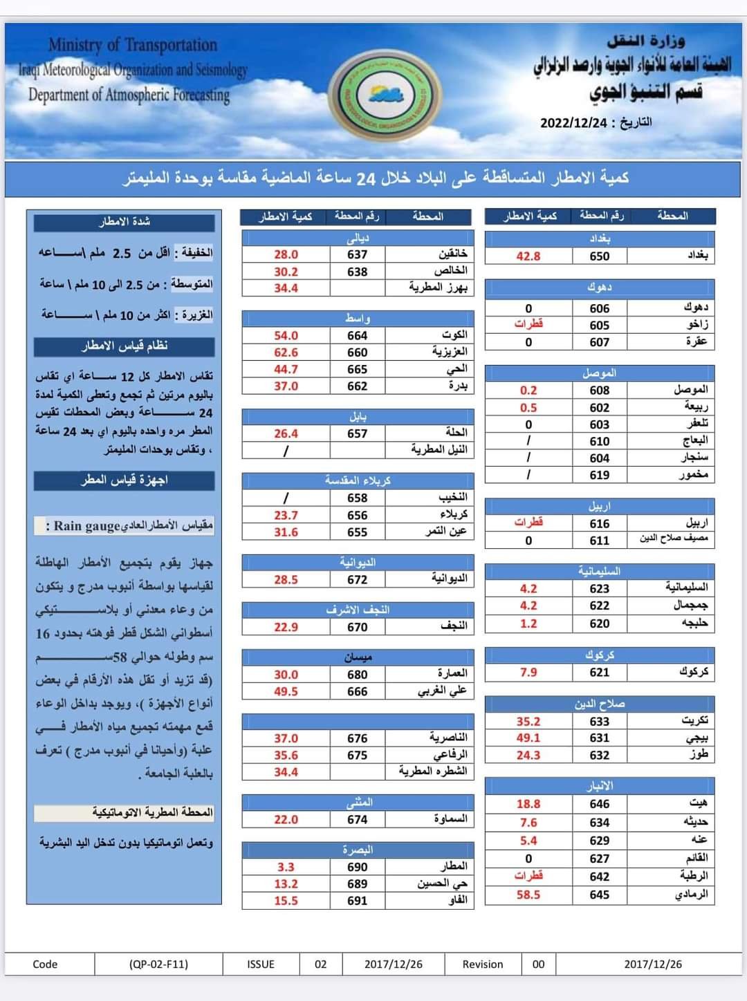 كمية الأمطار المتساقطة خلال ٢٤ ساعة ماضية ?