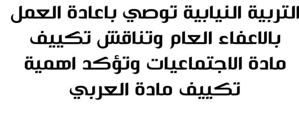 التربية النيابية توصي بإعادة النظر بالعمل بنظام الإعفاء الكلي لما له دور في تشجيع الطالب للدراسة.
