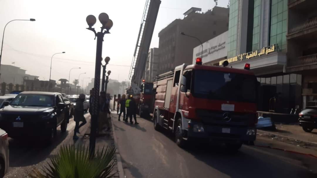 فرق الدفاع المدني تخلي النزلاء وتخمد حريقاً اندلع داخل فندق وسط بغداد