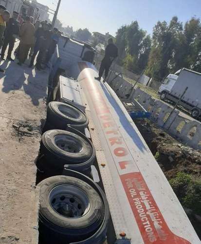 صهريح يهوي من أعلى جسر في نينوى وفرق الانقاذ تنقذ سائق وتمنع كارثة بيئية
