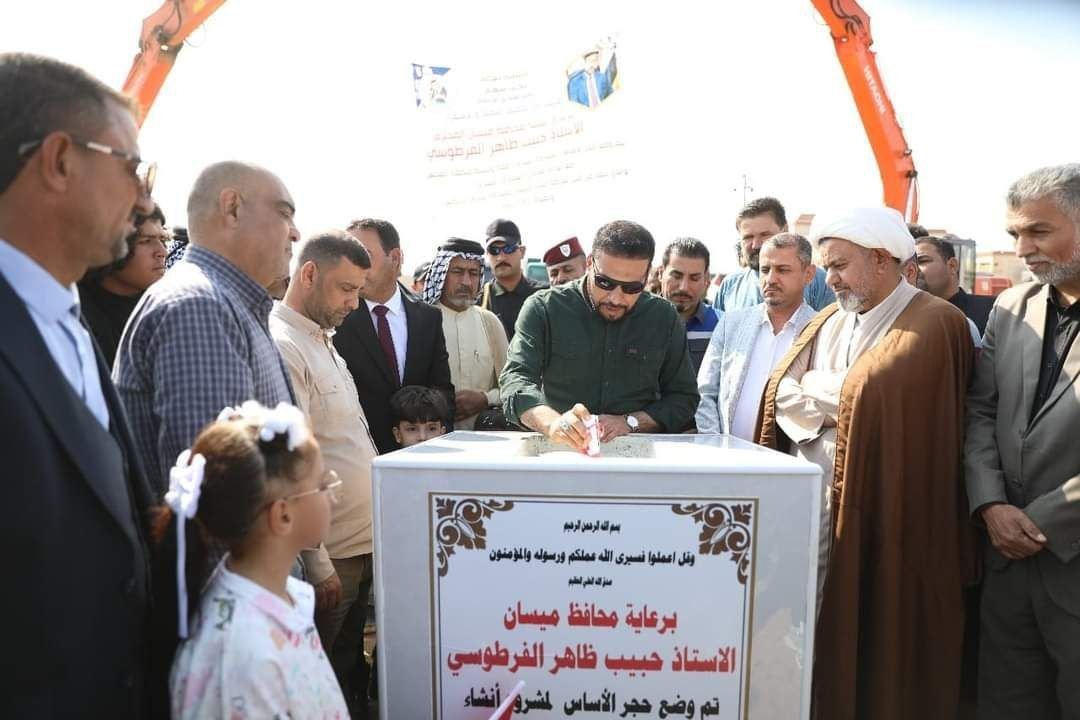 محافظ ميسان يرسي حجر الأساس لمشروع إنشاء أرصفة وتبليط لمنطقة المجبس في العمارة