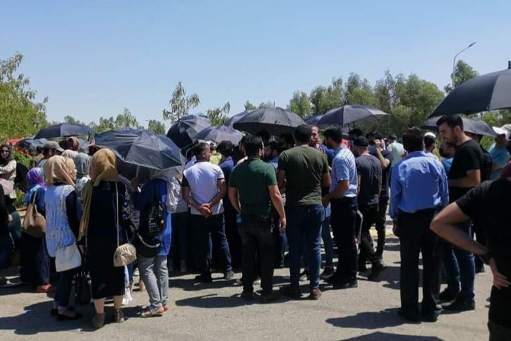 الخريجون المتدربون يتظاهرون أمام شركة نفط الشمال للمطالبة باستثنائهم من تعليمات الأجور اليومية