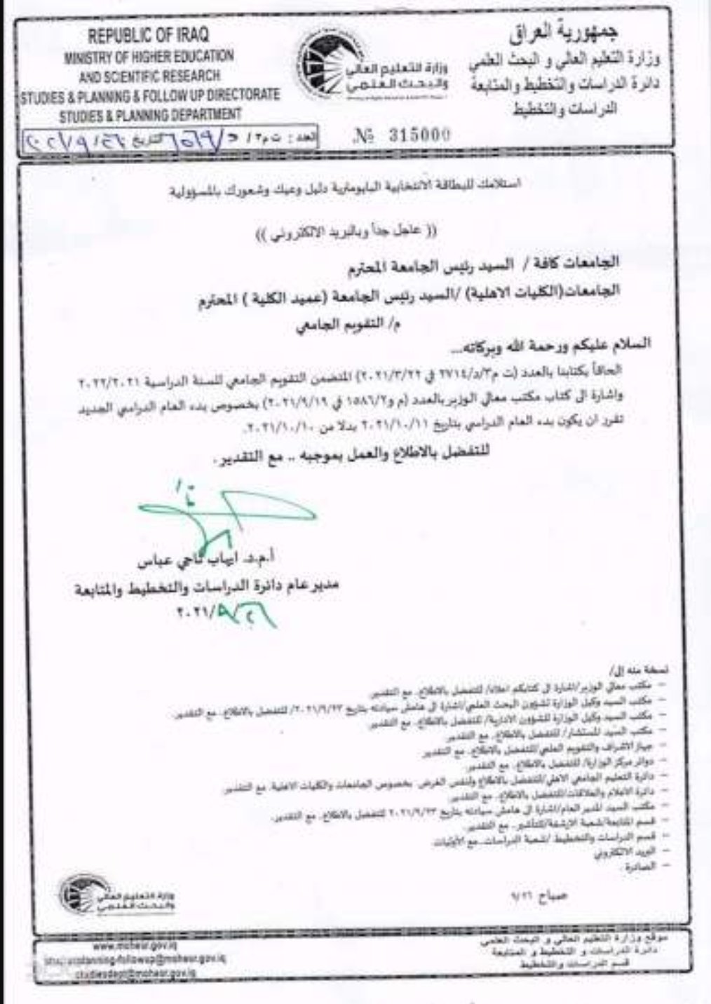 بالوثيقة.. موعد بدء العام الدراسي الجديد في الجامعات العراقية