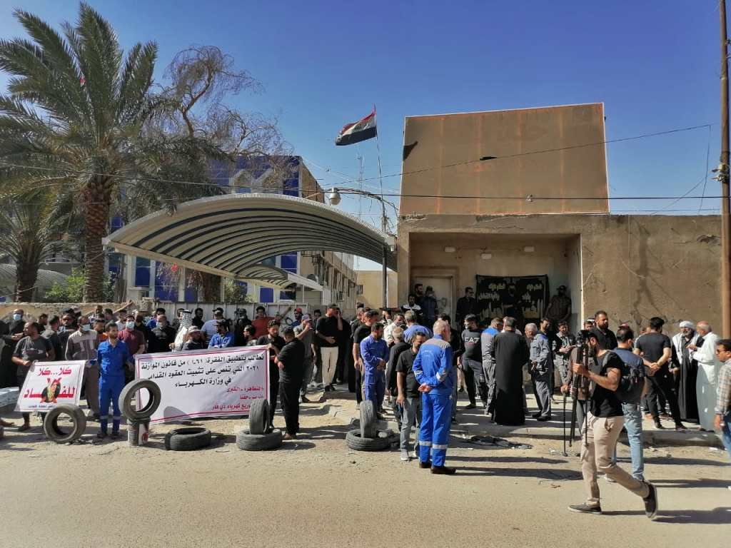 بسبب عرقلة تثبيتهم.. موظفو العقود يغلقون مبنى للكهرباء في ذي قار
