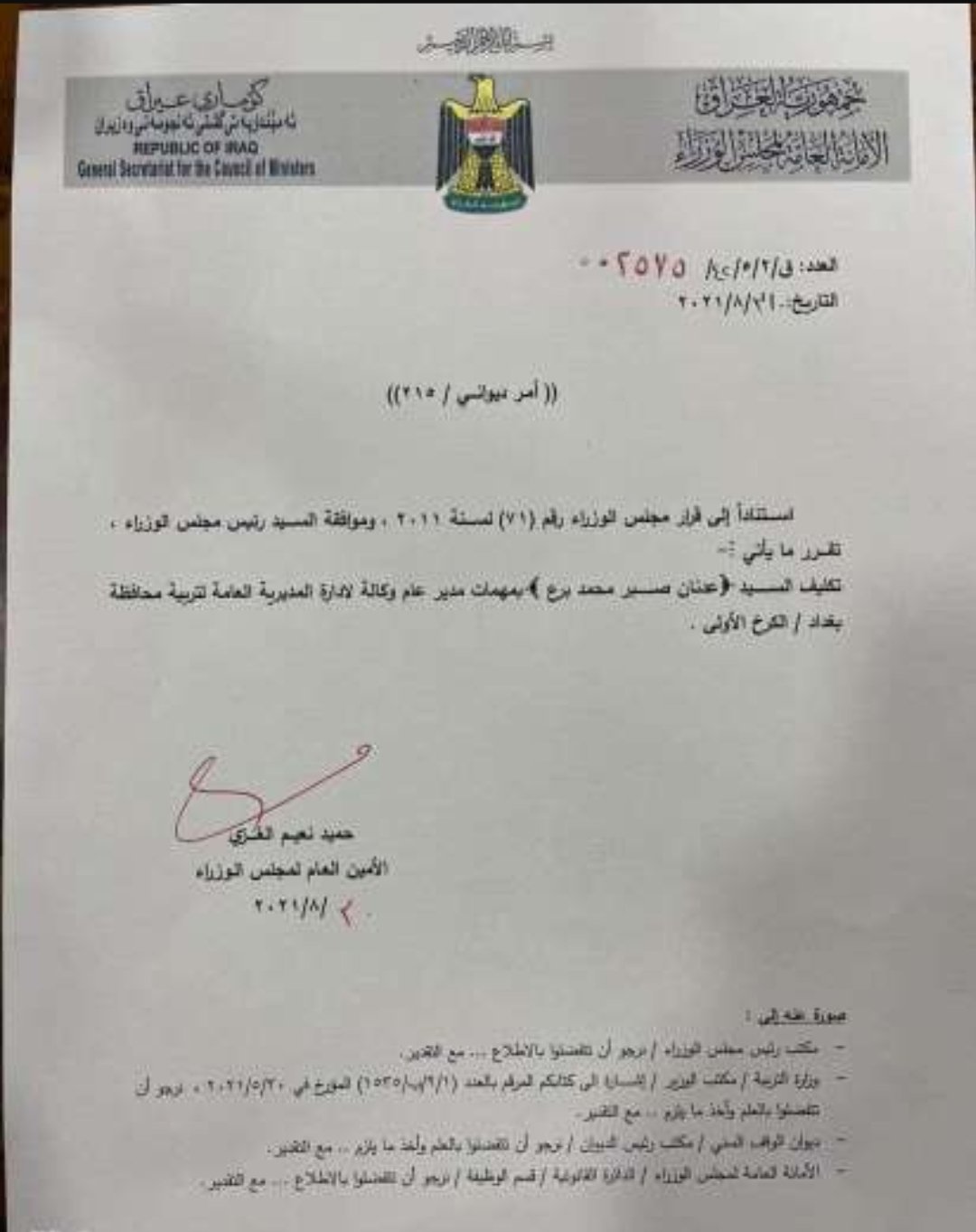 تكليف مدير جديد لمديرية تربية بغداد الكرخ الأولى (وثيقة)