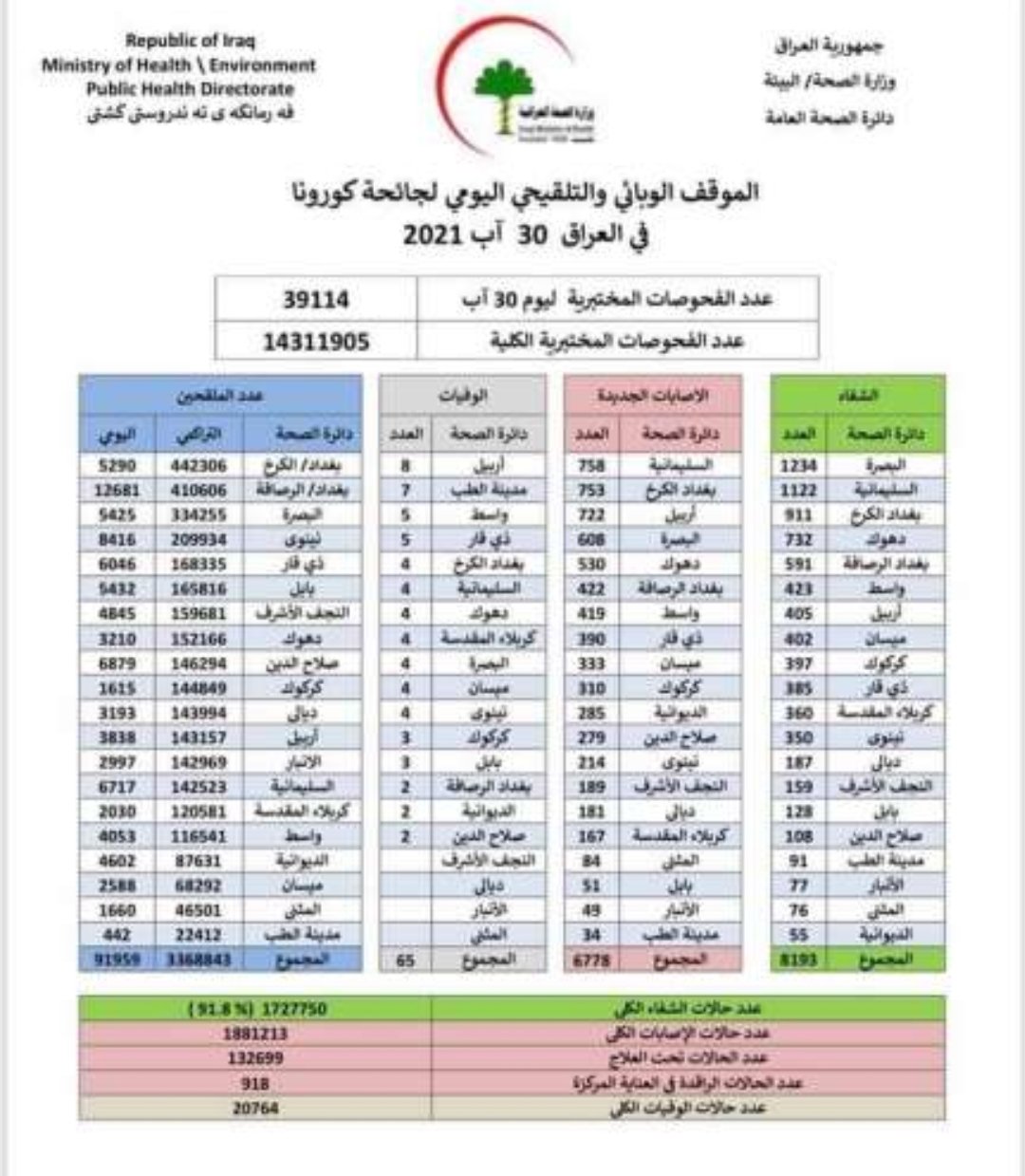 انخفاض الوفيات.. الموقف الوبائي لإصابات كورونا في العراق