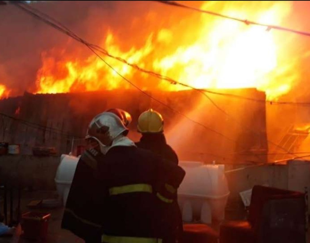 اندلاع حريق كبير داخل مخزن للمواد البلاستيكية وسط بغداد