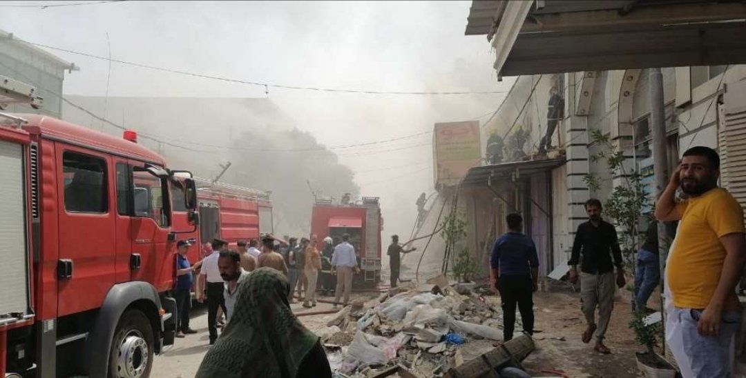 حريق في محال بيع الجملة في الجزر الأربع بقضاء شط العرب بالبصرة