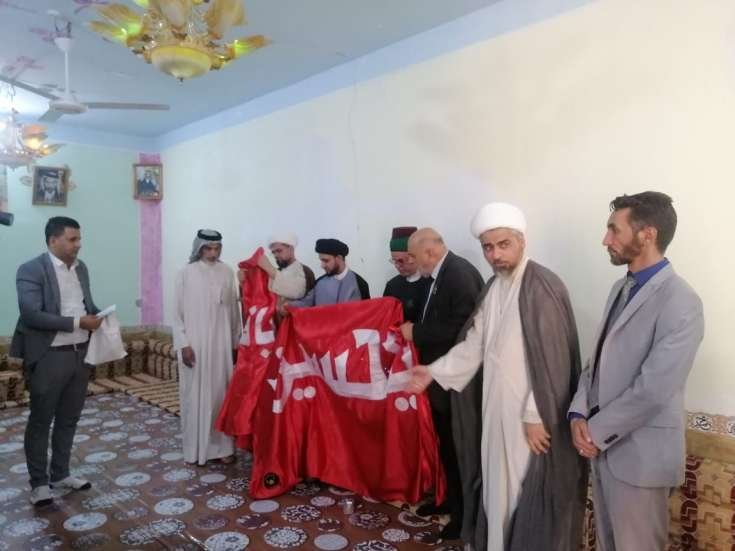 بالصور.. اهداء رايتي مرقدي الحسين والعباس (ع) لذوي ضحايا فاجعة الناصرية