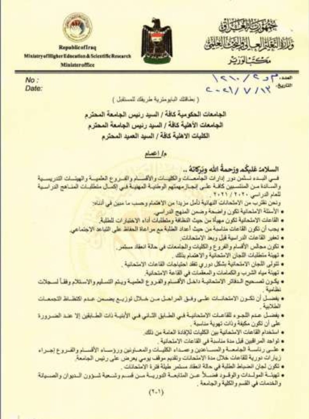 وثيقة.. وزير التعليم يصدر 22 توجيهاً للكليات كافة تخص امتحانات الطلبة