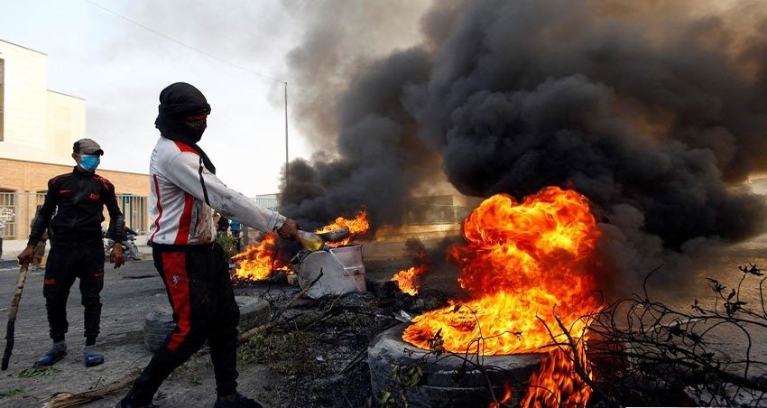 اغلاق ديوان محافظة ذي قار وشارع الامام علي بواسطة الاطارات المحترقة