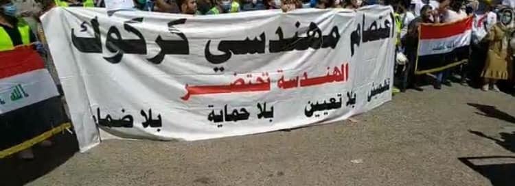 خريجو الهندسة يتظاهرون أمام بوابة المحافظة للمطالبة بتعيينهم في كركوك