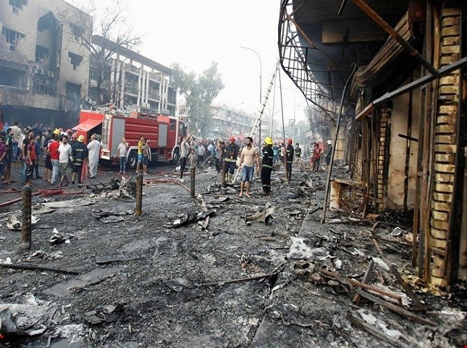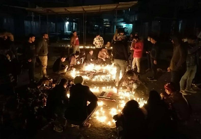بالصور.. شموع يتوسطها علم العراق في موقع تفجير بغداد