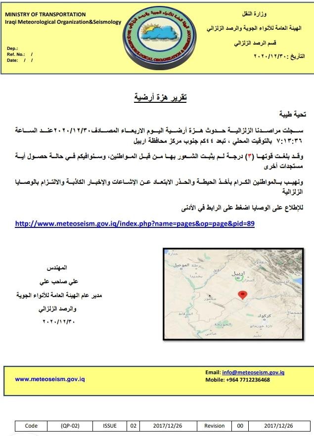 تصريح مقلق : الأنواء الجوية ... الهزات الأرضية بدأت تزداد بالعراق !
