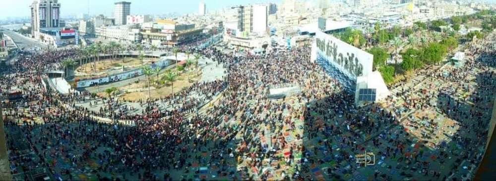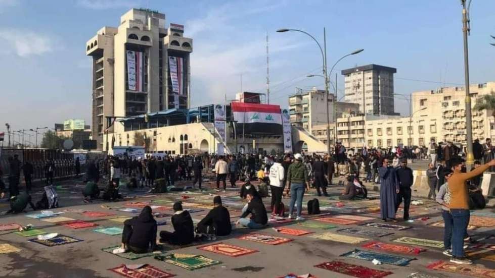 المئات من أنصار التيار الصدري يؤدون صلاة الجمعة في التحرير