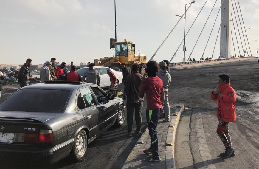 افتتاح جسر الشهداء (الزيتون) وسط الناصرية بحضورآلاف المتظاهرين