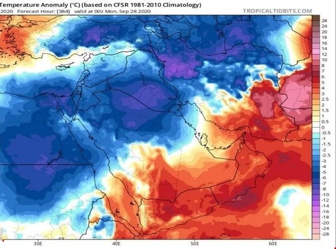 حالة الطقس حتى نهاية الأسبوع.. انخفاض بدرجات الحرارة وأجواء معتدلة بهذه المناطق