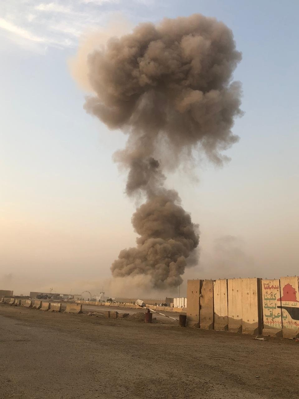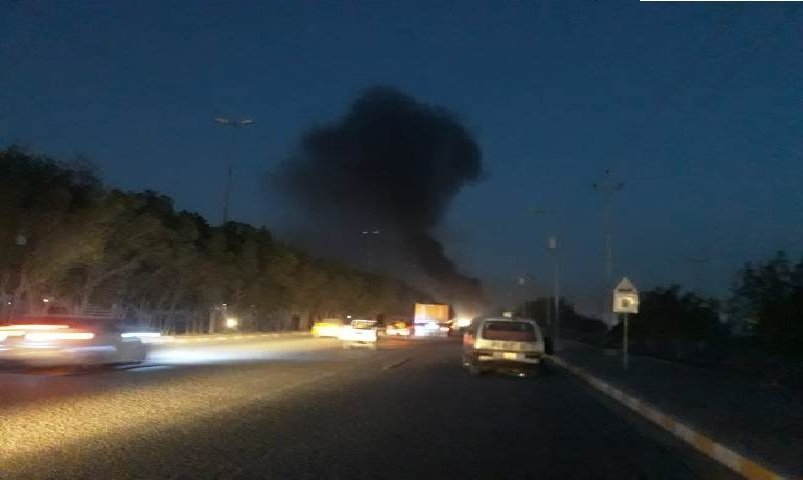 تصاعد اعمدة الدخان بالقرب من معسكر على طريق سريع الدورة جنوبي بغداد