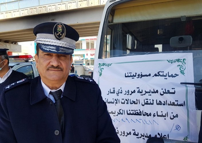 مرور ذي قار تخصص باصين لنقل الحالات الطارئة أثناء حظر التجوال