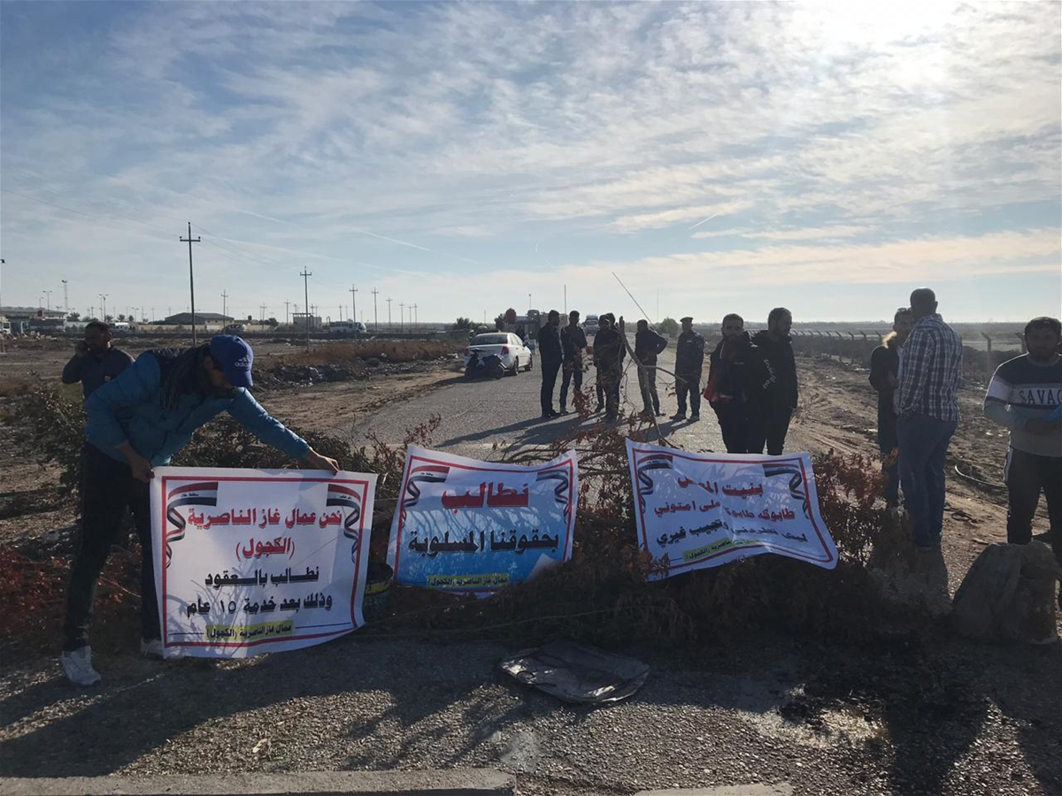 بعد انهاء خدماتهم.. عمال معمل غاز الناصرية يمنعون دخول وخروج سيارات الغاز