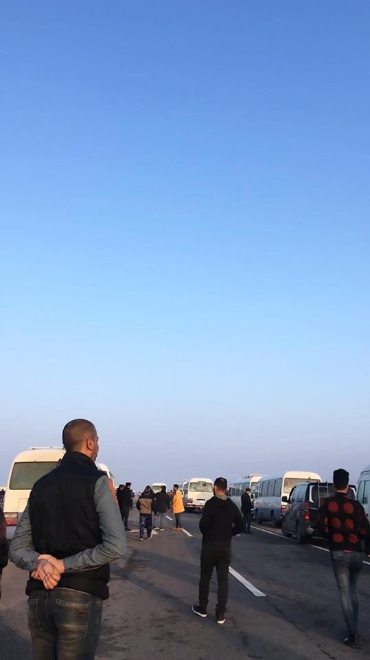 متظاهرون يقطعون الطريق الرئيسي المؤدي الى ميناءي ام قصر وخور الزبير