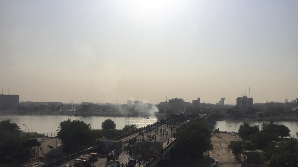 اطلاق قنابل مسيلة للدموع لتفريق المتظاهرين قرب جسر الشهداء وسط بغداد