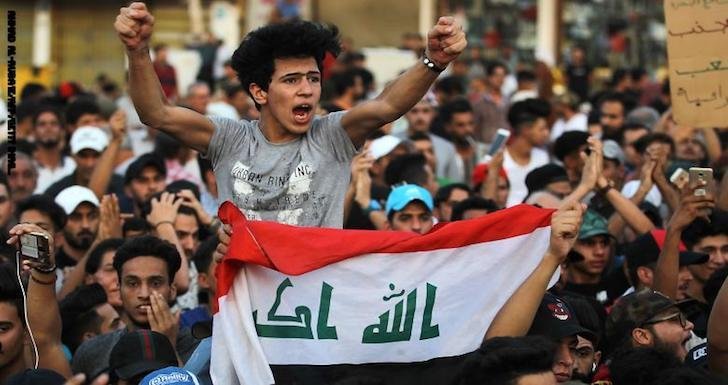.المتظاهرون يحرقون العلم الايراني في بغداد وكربلاء