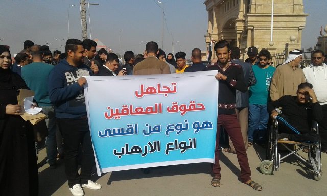 العشرات من ذوي الاحتياجات الخاصة يتظاهرون للمطالبة بتحسين ظروفهم المعاشية