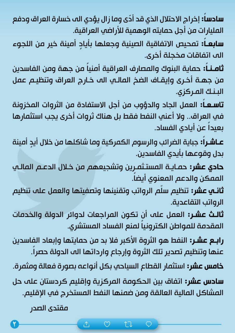الصدر: العراق يخسر المليارات بسبب تواجد الاحتلال الأميركي ويجب إخراجه