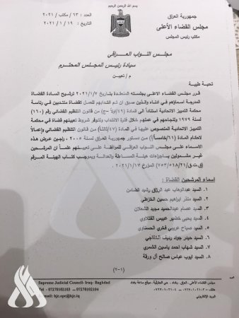ينشر المصدر، اليوم الثلاثاء، أسماء أعضاء محكمة التمييز المصوت عليهم في جلسة مجلس النواب الثانية التي عقدت برئاسة رئيس المجلس محمد الحلبوسي.