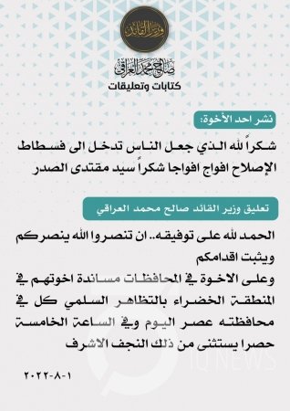 "وزير الصدر" يدعو أنصاره في المحافظات إلى التظاهر في الساعة الخامسة مساء اليوم