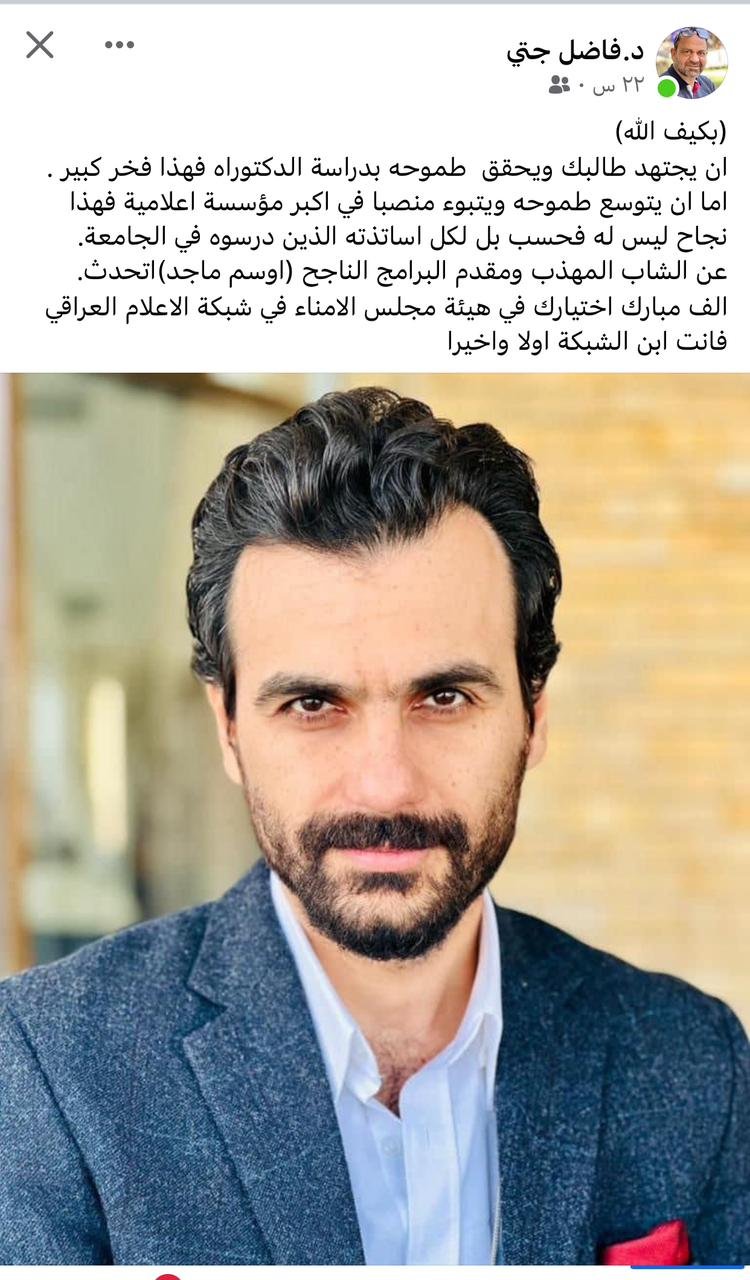 وأشار إلى "انتخاب ثائر الغانمي رئيساً لمجلس الأمناء وسناء سعيد نائباً للرئيس ، استناداً إلى قانون شبكة الإعلام العراقي المرقم 26/ لسنة 2015 المعدل وفق أحكام المادة ثامناً فقرة تاسعاً".