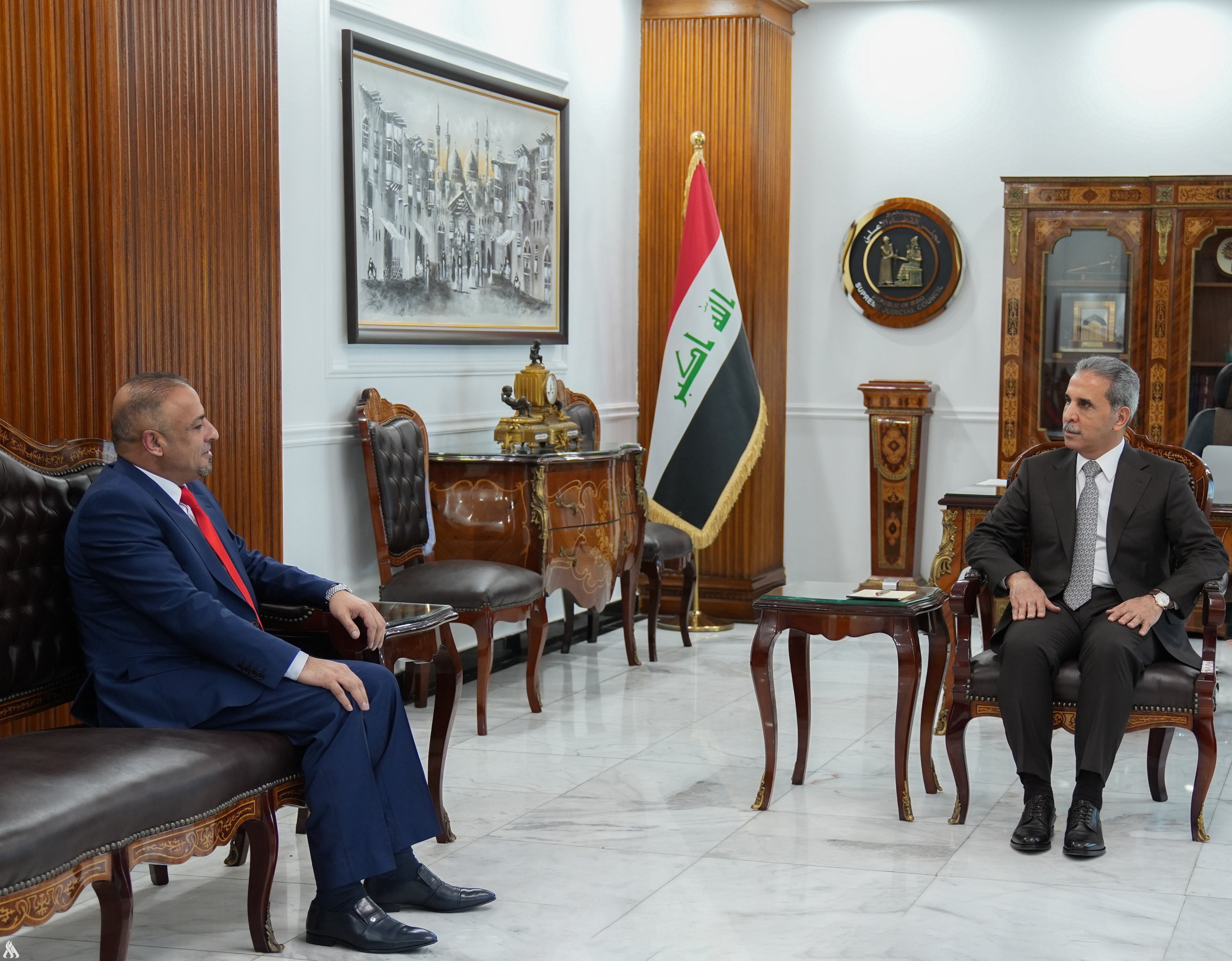 بحث رئيس مجلس القضاء الاعلى فائق زيدان ومحافظ ديالى عدنان الشمري، اليوم الاحد، التعاون بين القضاء والمحافظة لمعالجة الاشكاليات القانونية الخاصة بمشاريع.