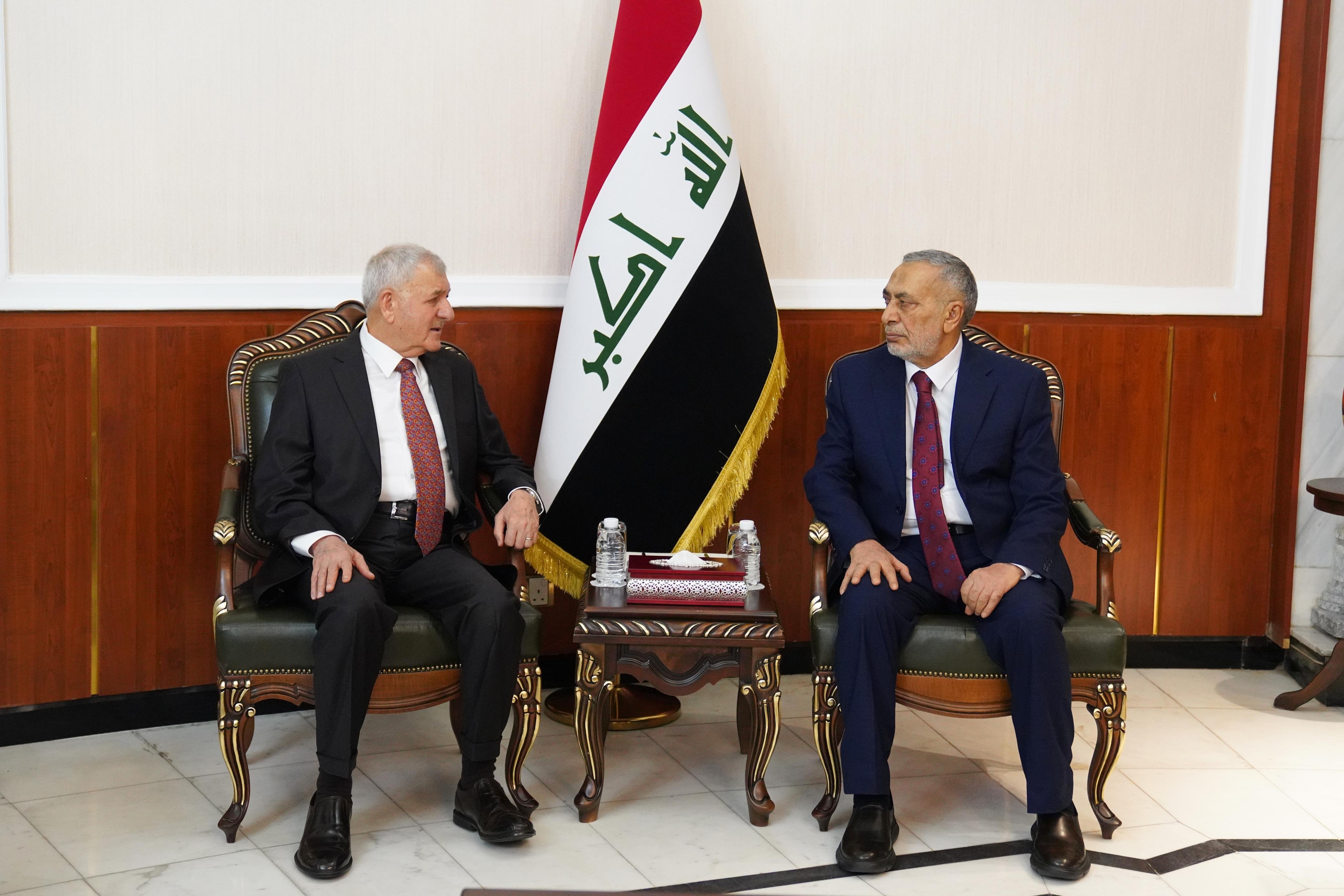 استقبل رئيس مجلس النواب المنتخب محمود المشهداني رئيس الجمهورية عبد اللطيف جمال رشيد ، وتمت خلال اللقاء ، مناقشة تعزيز آليات التواصل والتنسيق بين رئاسة الجمهورية ورئاسة مجلس النواب والعمل على تقديم القوانين والتشريعات التي تصب في مصلحة المواطنين وخصوصا في الجوانب الأمنية والسياسية والاقتصادية.