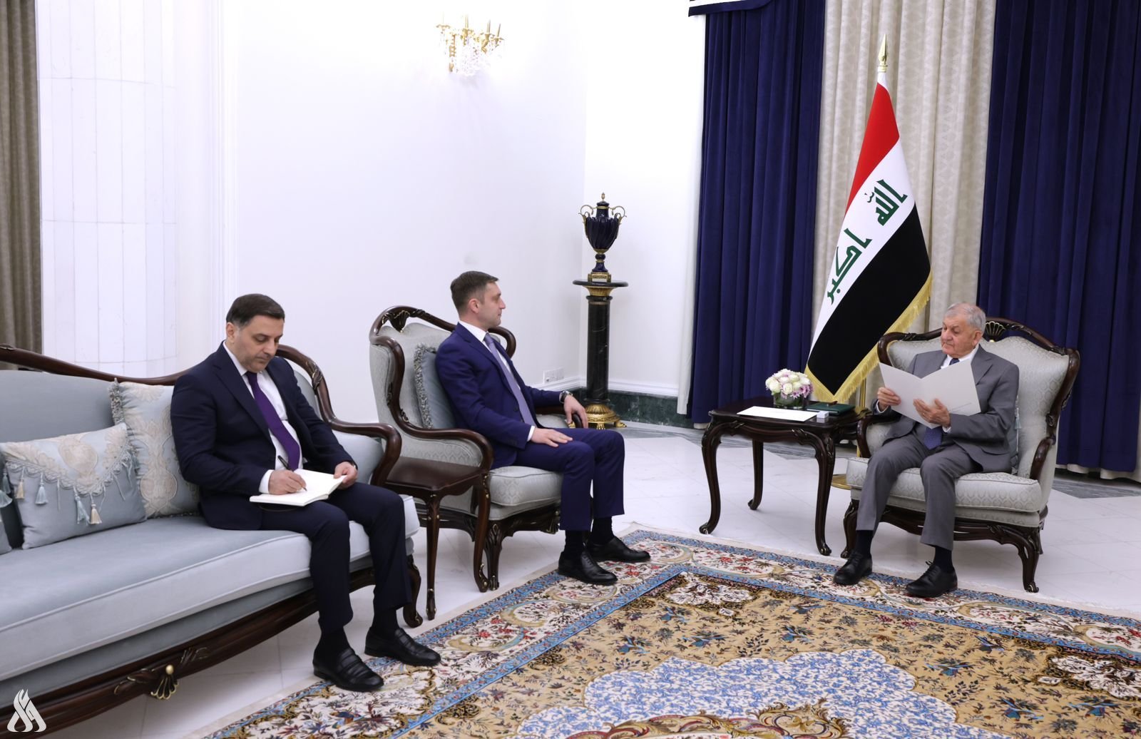 وأضاف البيان، أن "اللقاء حضره وزير الصحة صالح الحسناوي ورئيس ديوان رئاسة الجمهورية  كامل الدليمي ورئيس لجنة الزراعة والمياه والأهوار النيابية فالح الخزعلي".