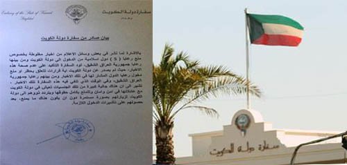 نفت السفارة دولة الكويت في بغداد ،اليوم الجمعة ، بصدور قرار حظر او منع دخول رعايا خمس دول اسلامية من ضمنها العراق الى لأراضي دولة الكويت .