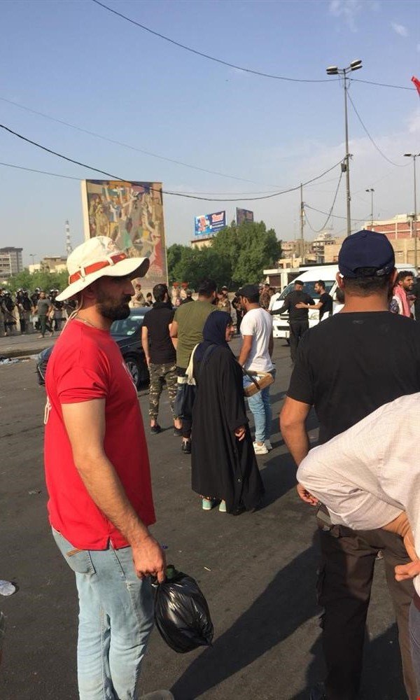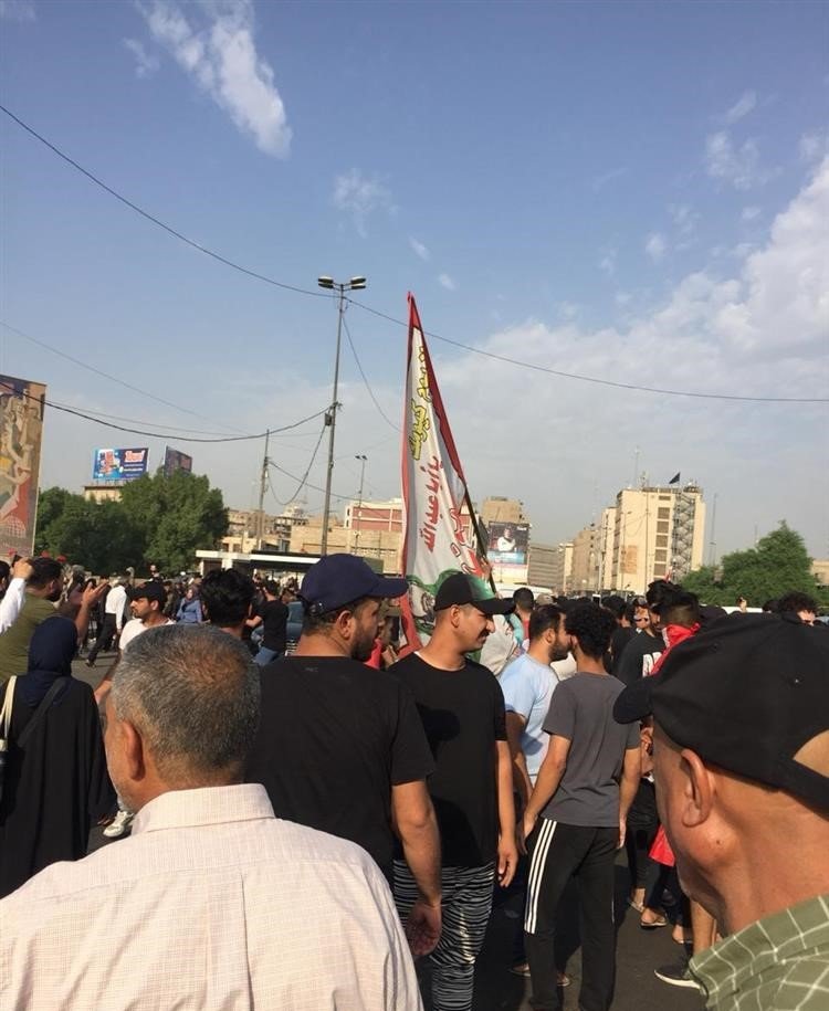 تجمع المتظاهرين في ساحة الطيران، وسط العاصمة بغداد.