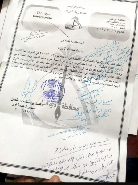 كشفت وثيقة حكومية، اليوم الثلاثاء، عن إصدار ناحية أور شرقي مدينة الناصرية مركز محافظة ذي قار قرار يخص العاملين في الناحية وهم ليسوا من سكنتها.وذكرت الوثيقة التي حصلت "من كربلاء الخبر " عليها، أن "مدير الناحية رعد سلطان قرر إنهاء خدمات الموظفين الاداريين العاملين في بلدية الناحية لكونهم ليسوا من ابناء أور، وتعيين أخرين بدلا عنهم من ابناء ناحية أور كمنظفين".وبينت الوثيقة، أن "القرار يأتي للحفاظ على أمن المدينة من التظاهرات".
