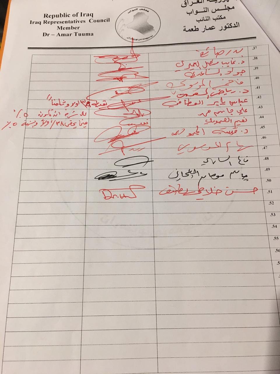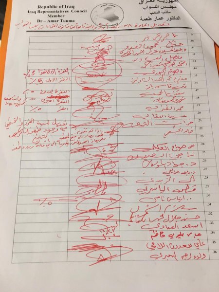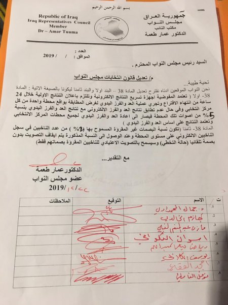 تنشر وكالة من كربلاء الخبر ، بالوثائق، تواقيع لعدد من أعضاء البرلمان لتعديل المادة 38 من قانون انتخابات مجلس النواب والذي من المؤمل التصويت عليه في جلسة اليوم الاثنين