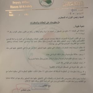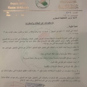 وتابع الخالدي ان "الحكومة ما قبل السابقة قامت باغلاق تلك السفارات والبعثات الدبلوماسية البالغ عددها ١٢ بين سفارةَ وبعثة وقنصلية فيما أقدمت الحكومة المستقيلة على اعادة افتتاحها لذا سعينا بكل جهد رسمي ورقابي لمتابعة هذا الملف وتم على أثر ذلك  توجيه مجموعة كتب رسمية الى رئيس الوزراء ووزيري الخارجية والتخطيط لايقاف هذا الهدر في المال العام واتخاذ الاجراءات التي من شأنها تقليل الاعباء المالية المترتبة على منافذ غير ذات أهمية أو خدمة من شأنها أن تعود للبلد بالفائدة".